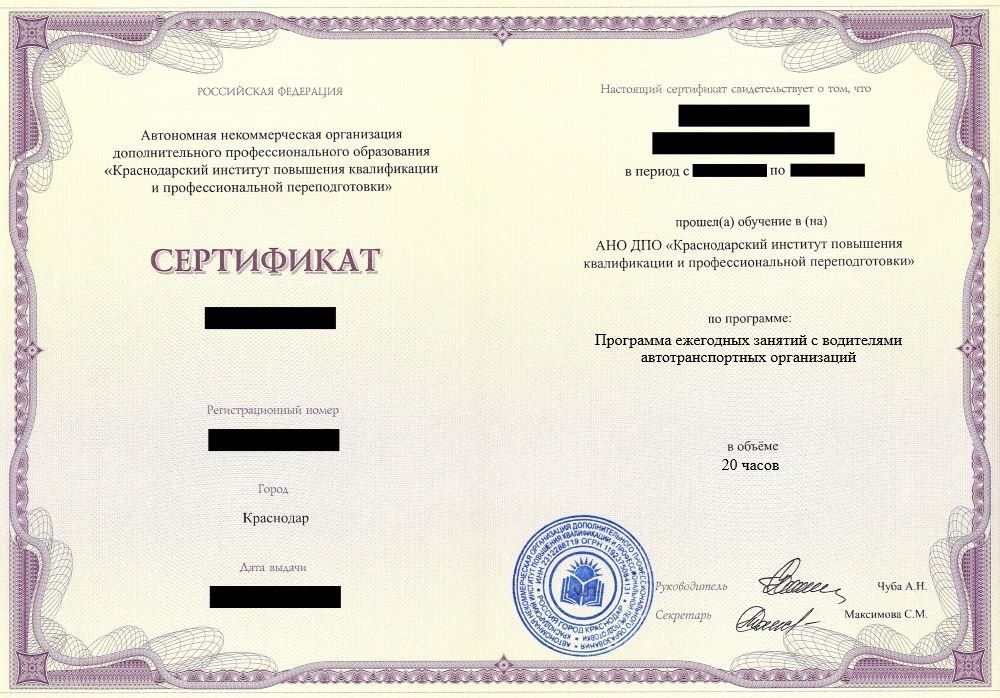 - Сертификат (при отсутствии среднего профессионального или высшего образования)