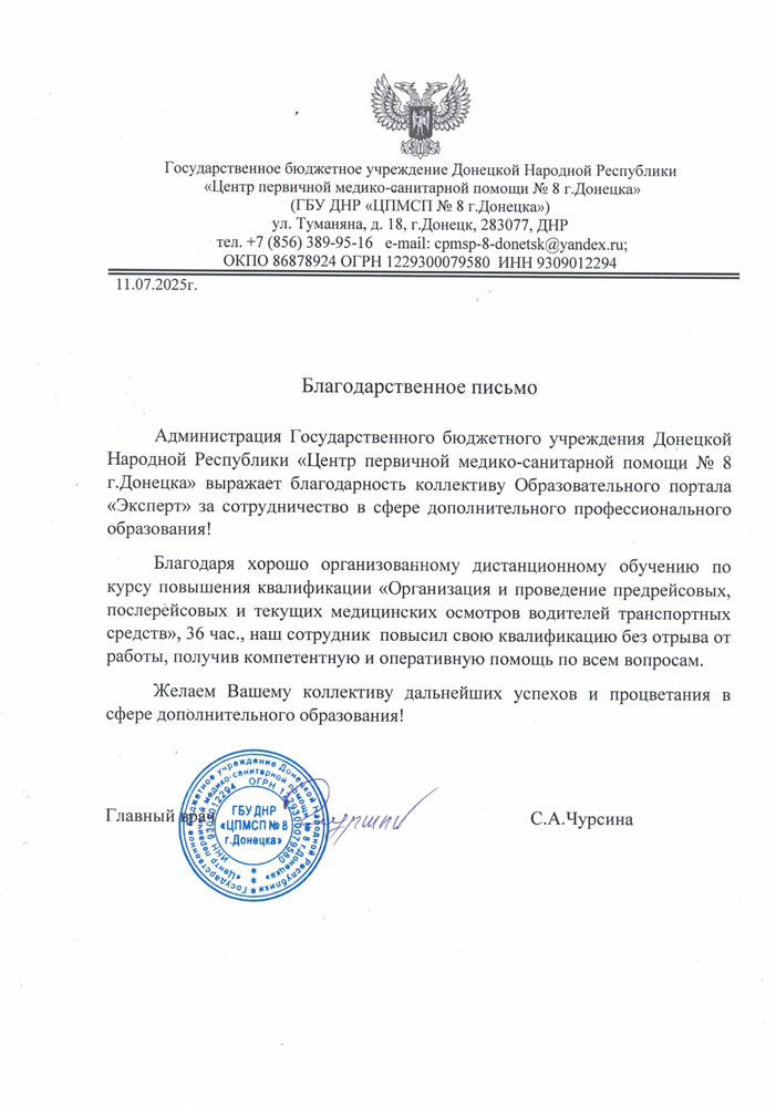 - Удостоверение о повышении квалификации установленного государством образца. Срок действия: 5 лет