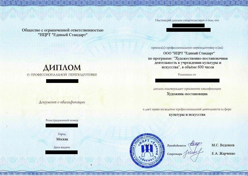 • «Художник-постановщик» с правом осуществления профессиональной деятельности в сфере культуры и искусства